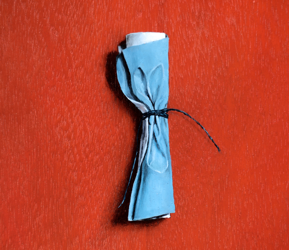 - “Absolute: Denial” (detail): Oil on reclaimed panel. 12 1/2″ x 12″. 1.12.14.