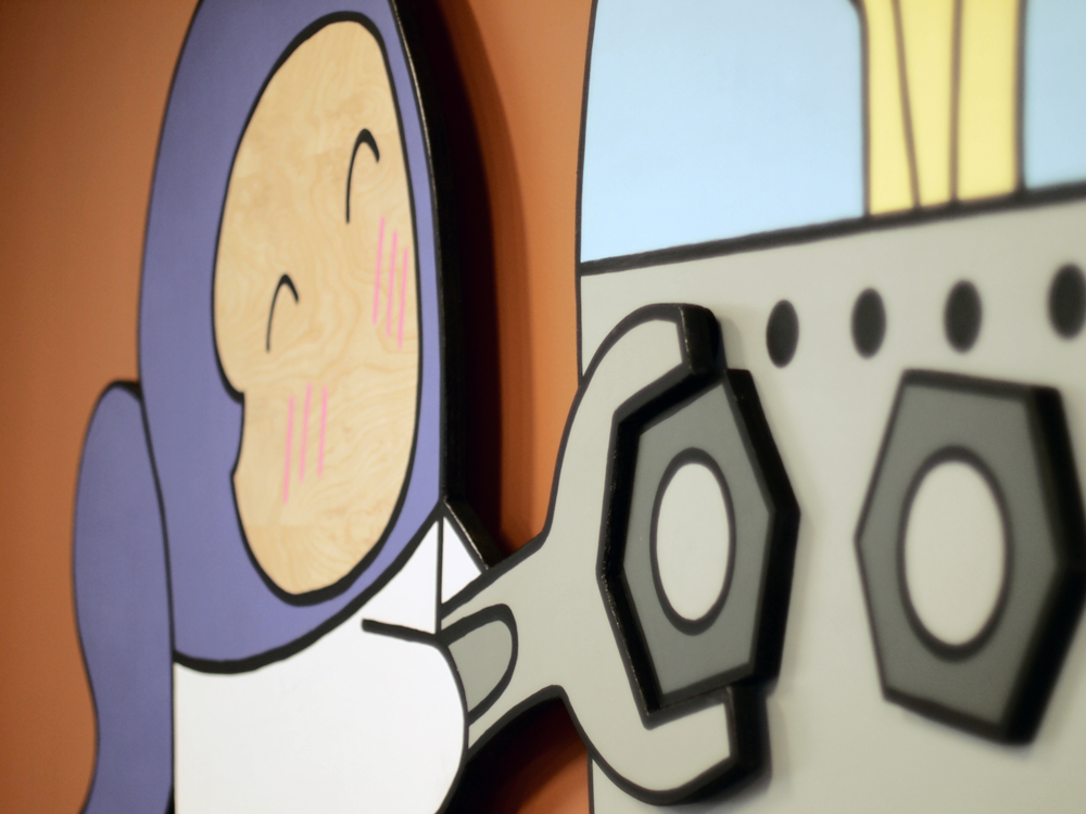 “Wrench Girl” (detail) Published on March 23, 2014 in ToeHeads At the Center Of Science And Industry MuseumFull resolution (1000 × 750) ← Previous Next → “Wrench Girl” (detail): Acrylic on baltic birch plywood. 3-D cutouts.