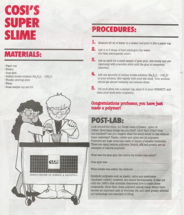 An Actual Slime Recipe From My Childhood Published on March 23, 2014 in ToeHeads At the Center Of Science And Industry MuseumFull resolution (1218 × 1423) ← Previous A COSI slime recipe I have kept for 23+ years