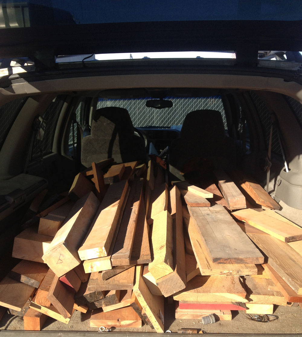 The background wood was constructed from three slats of cherry wood that was part of a large donation from my longtime friend and fellow artist, Casey Bradley. The donation included cut-offs and scraps of wood ranging in species and age. I found three boards that matched in color and grain pattern and knew instantly that I needed to make a painting on them. I have yet to use all of the wood, but I’ve certainly put a good dent in the stash.