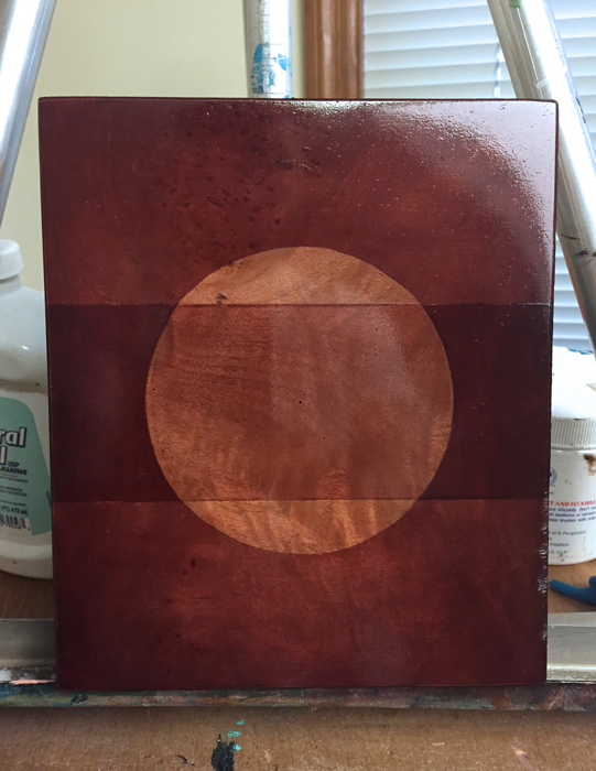 Absolute: Allure11 Published on June 7, 2015 in NEW Painting! The Layers of “Absolute: Allure”Full resolution (541 × 700) ← Previous Next → Scraped away a circle and reapplied another (darker) coat of color to the stripe.