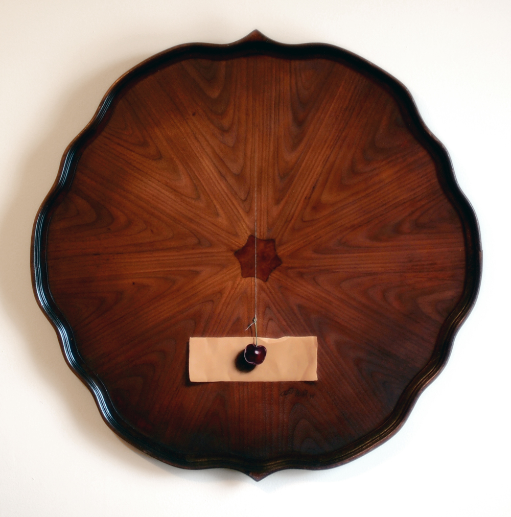 I’d like to introduce my latest painting, Absolute: Position, an oil painting on a reclaimed mahogany pie crust table top.