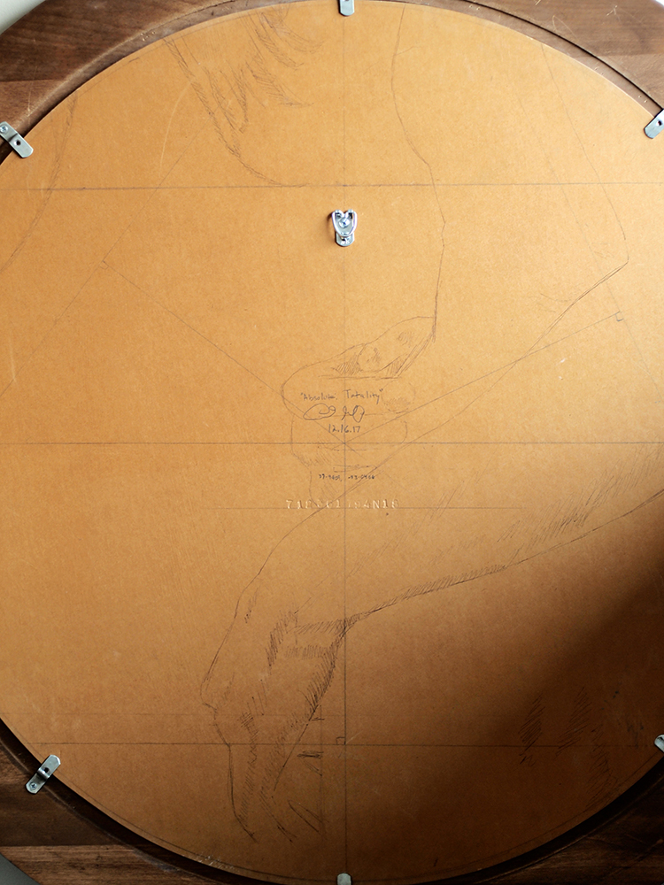 Absolute: Totality (back detail) Published on December 19, 2017 in VIDEO: “Absolute: Totality” Painting Explores Duality of OppositesFull resolution (750 × 1000) ← Previous Next → Absolute: Totality, secret drawing on the back “Absolute: Totality”, Oil painting on wood by Daric Gill Share: Share on Facebook (Opens in new window) Facebook Share on X (Opens in new window) X Share on Tumblr (Opens in new window) Tumblr Email a link to a friend (Opens in new window) Email Share on LinkedIn (Opens in new window) LinkedIn Share on Reddit (Opens in new window) Reddit Like Loading...