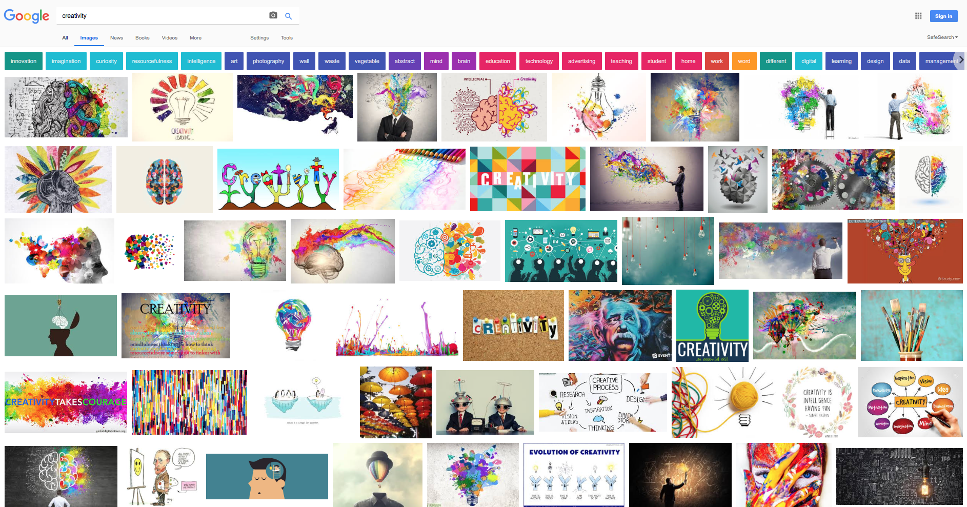 Even more interesting, Google the word “creativity”. Once more, the full rainbow of colors are dominant. Positivity is also thematically there, but there’s more. Click on the image and zoom in. Pay special attention to the suggested related topics above the images. The largest search engine in the world has photos and related topics such as “innovation, imagination, curiosity, resourcefulness, intelligence, mind, abstract, brain, and teaching”. These aren’t descriptors of a deadbeat. No, there’s a clear proposition that creativity is one of the most cherished parts of the human experience. There’s even a drawing of Albert Einstein himself! Again, these are still stereotypes, but our popular culture is describing the same topics with directly oppositional results. While this is simply an exercise in popular culture, the same type of results happens across cultural boundaries. Why? What is happening?