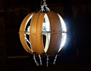 Believe it or not, most of the materials are reclaimed. The warm-toned wood that makes up the 12 sides used to be a dark-stained table from the late 1800s! Wires, switches, clips, and connectors; most all salvaged from other sources. Even the metal hardware that binds the piece together used to be the back plate of an earlier electronic sculpture. Additionally, all but one piece of clear acrylic was purchased from the remnants section of my plastics distributor. Each layer of acrylic is bolted to the wood by brackets salvaged from vintage Samsonite folding chairs. The major electronics, however, were purchased from a few choice websites. You can find that information in the link below. Please enjoy the image gallery.
