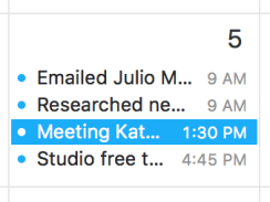 Additionally, calendars can be used for logging what you did and not just what you will do. As you wind down for the evening, write down any art accomplishments you had that day. It can be anything really: meetings, studio work, type of research you did (online or other), art-related emails sent, or contacts you’ve made, etc. This not only gives you a snapshot of the day when looking back, but it can also help see what areas need improvement and which areas are getting adequate care.