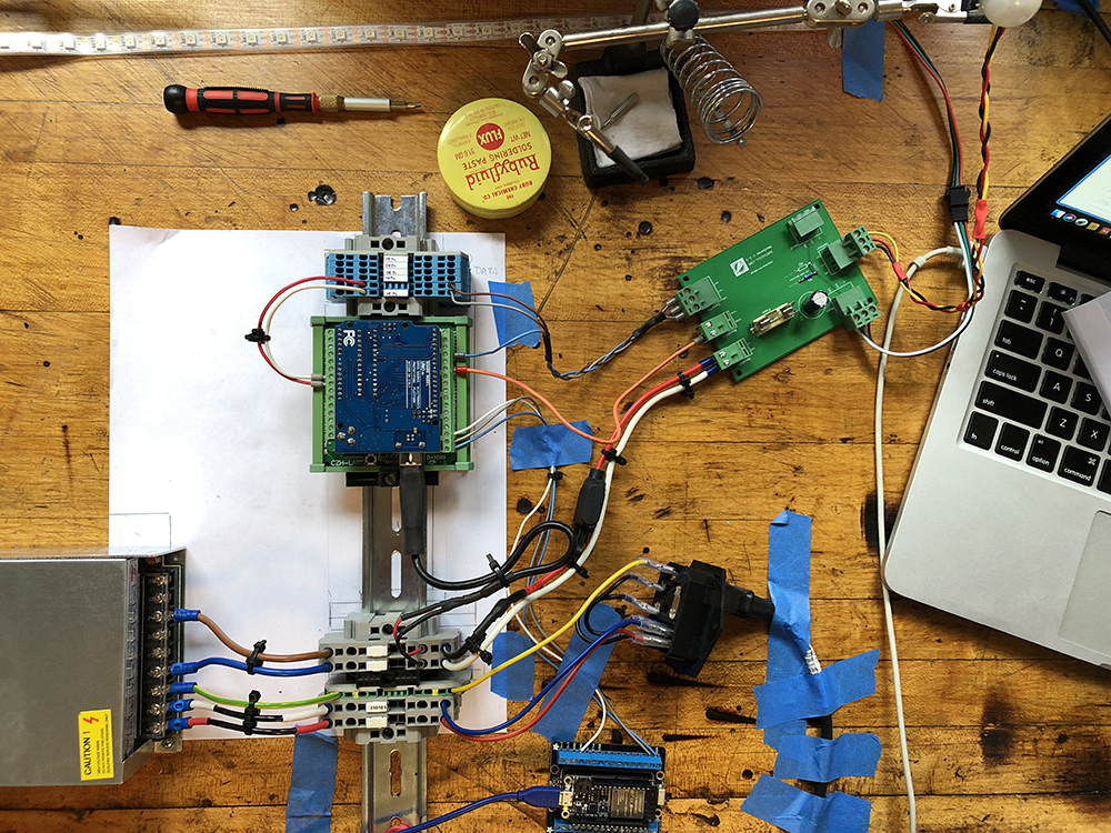 Building “The Imagination Machine” Published on July 5, 2019 in How It’s Made: Old Airplane To Contemporary Light Sculpture That Connects To NASA & Rest of The WorldFull resolution (1000 × 750) ← Previous Next → Using the Arduino Uno to drive the 5 V lights and the ESP32 to connect to Wi-Fi. The Arduino would later be dropped as it’s not entirely necessary. Robotics sculpture by Daric Gill Share: Share on Facebook (Opens in new window) Facebook Share on X (Opens in new window) X Share on Tumblr (Opens in new window) Tumblr Email a link to a friend (Opens in new window) Email Share on LinkedIn (Opens in new window) LinkedIn Share on Reddit (Opens in new window) Reddit Like Loading...