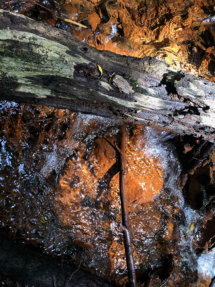 This wasn’t my first time to the heide, but it was the first time I investigated this area. The soil was sandy and the trees seem familiar. A small creek was to my right and a bright rusty red sediment deposited at the bottom of the water. There are moments where the woods transitions from the robust deciduous foliage and curvy trunks to straight needle-lined evergreens. The twig in Absolute: Connection was taken from this transitional moment, as the trees changed from curvaceous to linear.