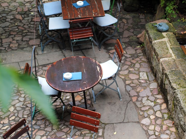 Bistro view from gallery Published on September 11, 2019 in Vernissage Walk-Through At Galerie Raskolnikow, Dresden, GermanyFull resolution (1000 × 750) ← Previous Next → Galerie Raskolnikow overlooking the Raskolnikoff restaurant bistro.