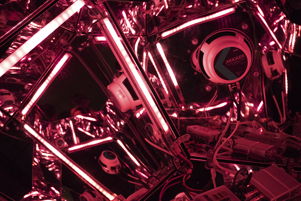 After 10+ months of engineering, coding, and building, I’m ready to debut my latest interactive robotic sculpture! “The Circadian Machine” is a fully mirrored geometric pod that can sense motion, display undulating lights and sound, tells time, and alter its actions based on each day’s sunlight cycle. The idea started when I saw a note left in a museum during my time at an artist residency in Dresden, Germany. It said, “I wish time slowed down when I was having fun.” Although the pandemic has veered the original concept into a totally different direction, I’m exceptionally proud of the regenerated ideas and execution that came to fruition in this piece.