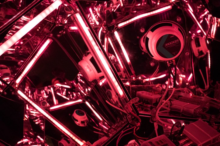 Motion-activated crimson wave.