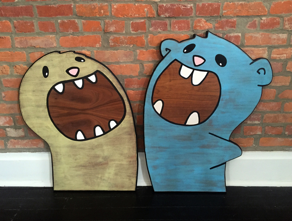 A few weeks ago I debuted The Brothers, seen here. Today, I announce their sister. Like her brothers, “Purple Sister” is another large-scale cut-out made from the top of a vintage secretary desk. Her surface is made from an oak laminate and has been freshly sanded. The original top had some very serious dents and scratches that had to be worked around. Check out the process gallery below.